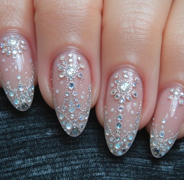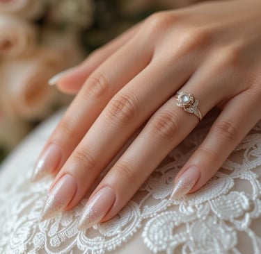 This one’s a little extra for my usual style—but wow, did it steal my heart. It’s magical, like something out of a dream, and somehow made me want to be that bride for a moment. Elegant, sparkly, and bridal. If fairytales had manicures, this would be it.