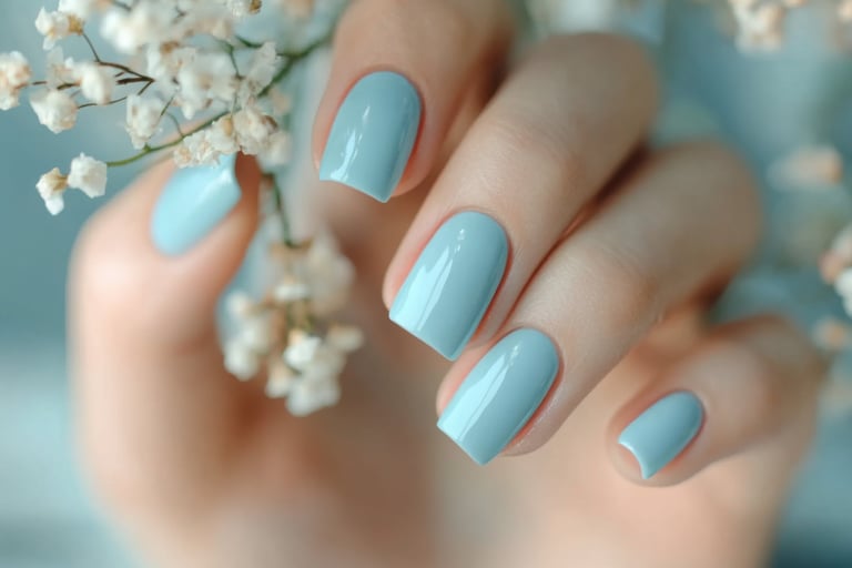 This elegant duck egg blue nail design is a top contender for favorite wedding nail looks. Its soft pastel shade exudes a calming, romantic vibe that complements both classic and modern bridal styles. The high-gloss finish and clean square shape add sophistication while keeping it timeless. Ideal for brides seeking subtle beauty with a touch of color.